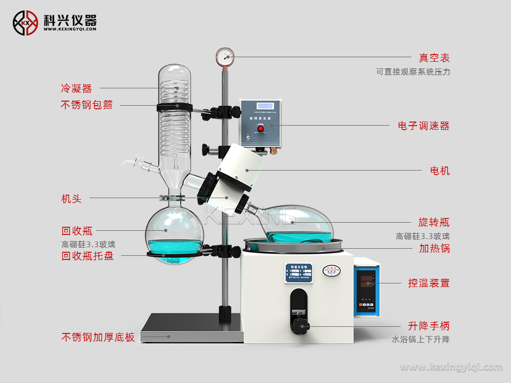 旋轉蒸發儀主要用于醫藥、化工和生物制藥等行業的濃縮、結晶、干燥、分離及溶媒回收。其原理為在真空條件下,恒溫加熱,使旋轉瓶恒速旋轉,物料在瓶壁形成大面積薄膜,高效蒸發。溶媒蒸氣經高效玻璃冷凝器冷卻,回收于收集瓶中,大大提高蒸發效率。特別適用對高溫容易分解變性的生物制品的濃縮提純。產品可與循環水式多用真空泵、隔膜真空泵、低溫循環(真空)泵,循環冷卻器,恒溫循環器,低溫冷卻液循環泵等配套組成系統裝置。